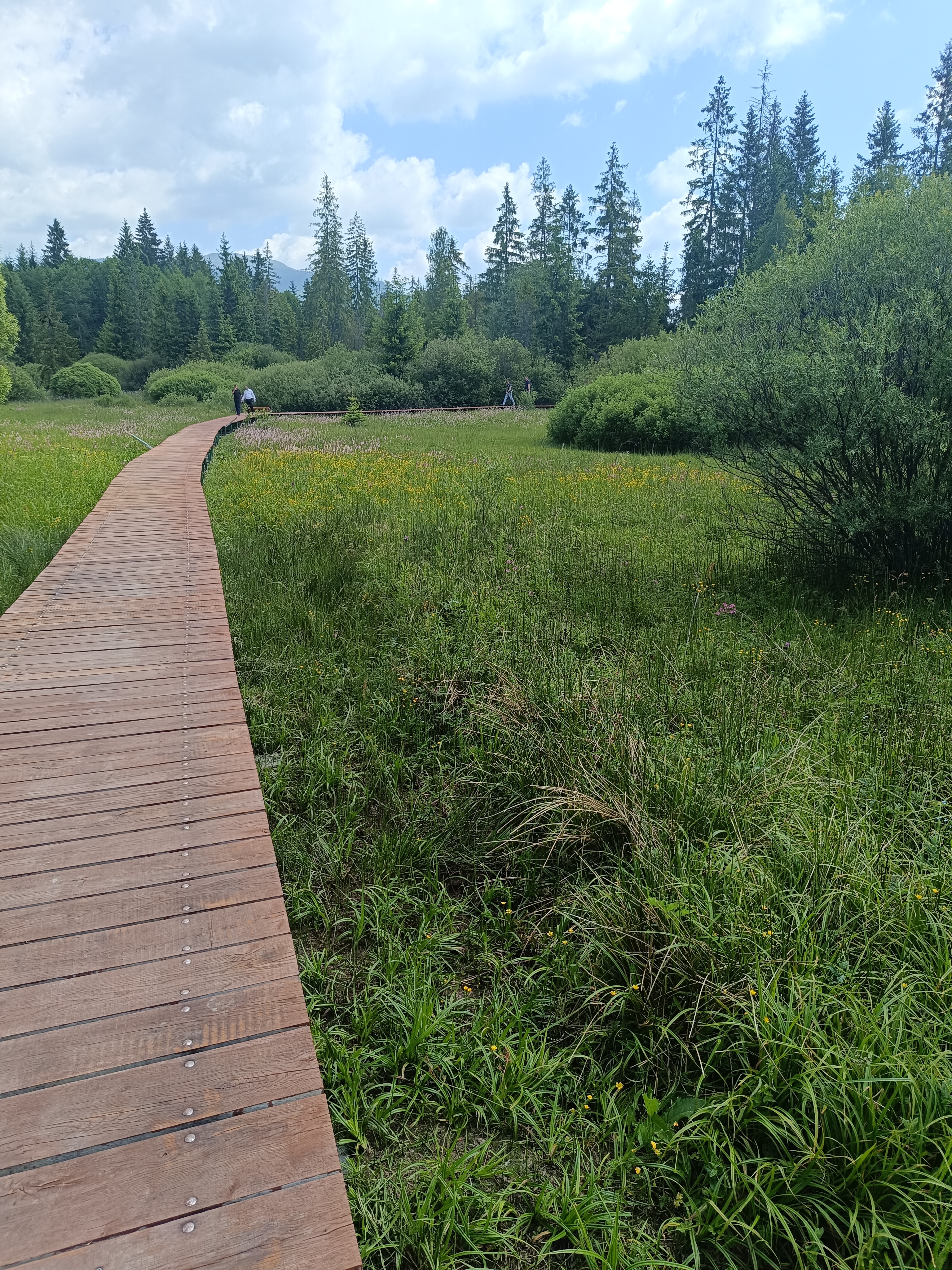 Drevený chodník, ktorý prechádza cez mimoriadne citlivé územie rašeliniska, umožňuje návštevníkom bezpečne objavovať túto lokalitu bez narušenia jej krehkého ekosystému.