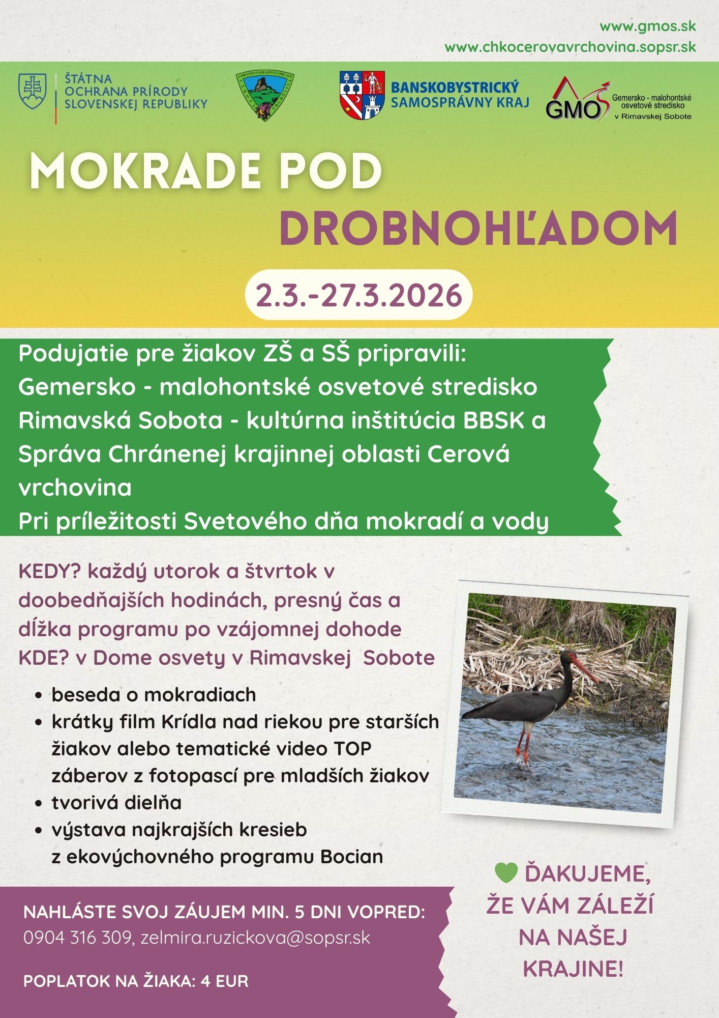 Mokrade pod drobnohľadom - plagátik k aktivitám Správy CHKO cerová vrchovina ku Svetovému dňu mokradí 2026